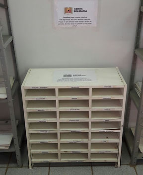 Uma segunda modificação foi realizada no espaço físico do Centro Acadêmico, com a implementação do móvel da "Xerox Solidária". Sendo essa uma promessa de campanha e de extrema importância, na qual, possibilita os estudantes que já cursaram determinada disciplina da grade curricular, doar as suas xerox para outros estudantes que vão cursar a determinada disciplina, garantindo assim a diminuição de gastos de dinheiro com xerox por parte dos estudantes e uma maior inclusão do estudante de baixa renda, além de ser uma medida ambiental com a diminuição do número de folhas gastas. O móvel conta com uma divisão em matérias.